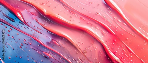 Vibrant Blue and Red Abstract Paint Swirls with Water Drops