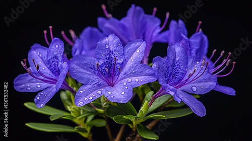 Vibrant Blue Azaleas with Dew Drops - Close-Up Floral Photography