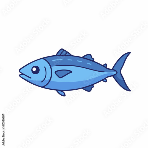 Vibrant Blue Bonito Fish Illustration, Side Profile View