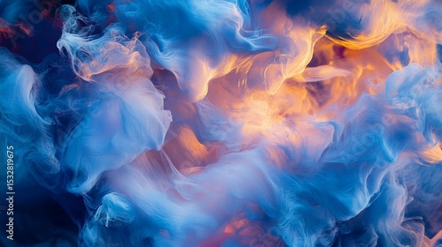 Vibrant Blue Cloud Undulating and Flowing with Warm Orange Light in an Abstract Swirl
