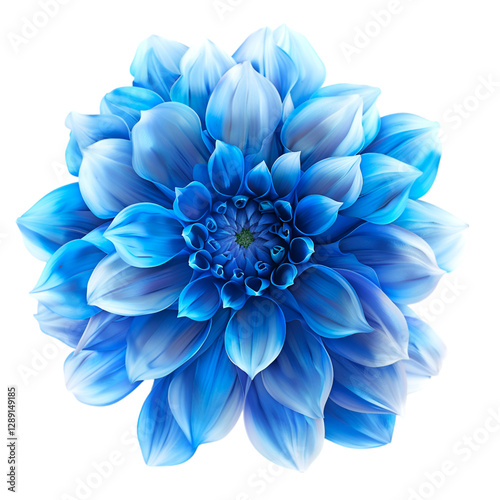 Vibrant Blue Dahlia Flower Closeup Isolated Black Background,