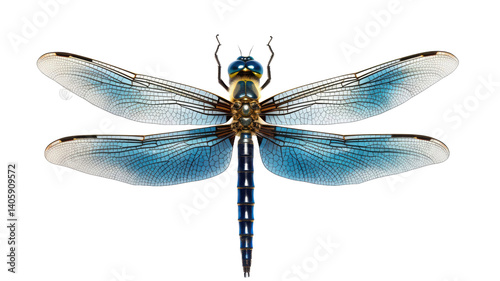 Vibrant blue dragonfly with transparent wings isolated on transparent background.png
