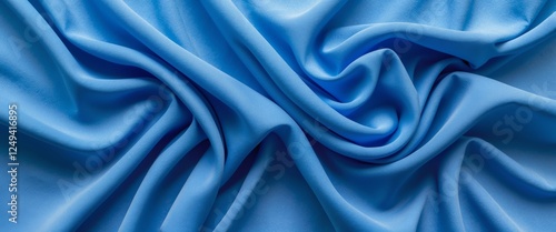 Vibrant blue fabric texture with elegant wrinkles and folds creating a dynamic visual flow suitable for design and textile backgrounds