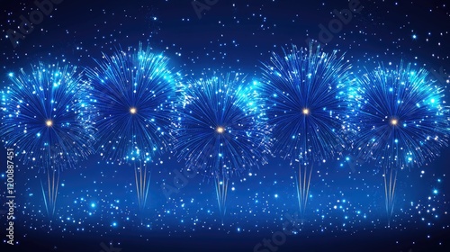 Vibrant blue fireworks exploding against a starry night sky