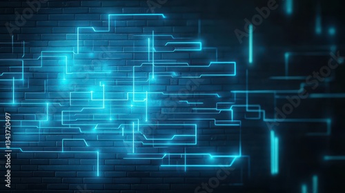 Vibrant Blue Glowing Abstract Background Featuring Textured Brick Wall Creating a Unique Artistic Atmosphere for Modern Digital Design and Creativity