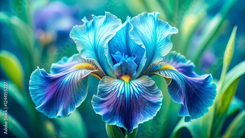 Vibrant Blue Iris Flower with Intricate Petals and Soft Background