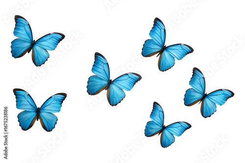 Vibrant Blue Morpho Butterflies Soaring Against Bold Abstract Pink and Black Stripes: Digital Art Print