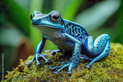 Vibrant Blue Poison Dart Frog On Mossy Rock