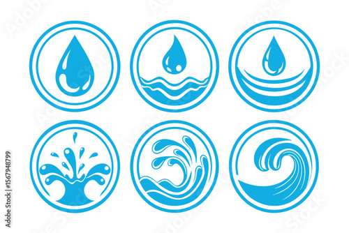 Vibrant Blue Vector Icon Set for Water and Wave Design