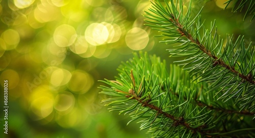 Vibrant Blurred Background with Focus on Green Pine Needles