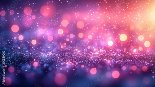 Vibrant bokeh lights with pink, purple, and blue dots, sparkling glitter, and soft glow. Festive sparkle pattern with bright hues and delicate shimmer.
