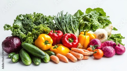 Vibrant Bounty of Fresh Vegetables: A colorful and enticing array of fresh vegetables, artfully arranged to showcase their natural beauty and wholesome goodness. Celebrating health.