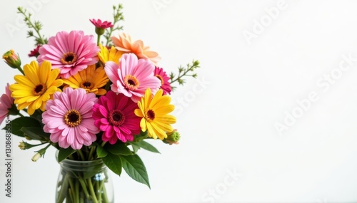 Vibrant bouquet, diverse blooms, white backdrop, photography, flowers, petals