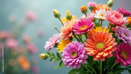 Vibrant bouquet of assorted flowers in full bloom , stems, blooming flowers, roses