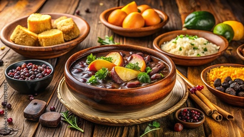 Vibrant Brazilian Feijoada Stew with Tropical Fruits & Churros