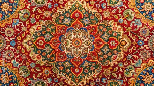 Vibrant Carpet Pattern Texture Featuring Intricate Designs and Rich Colors for Interior Decoration