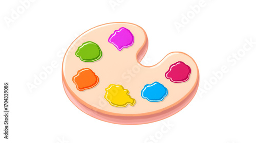 Vibrant cartoon art palette filled with colorful blobs of paint on a transparent background