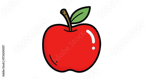 Vibrant cartoon of a red apple with green leaf, detailed illustration, educational and fun
