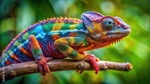 Vibrant chameleon showcasing bright colors and fascinating features on branch in nature