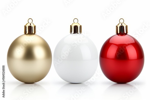 Vibrant christmas ornament in red, gold, and white with simple design on a bright background