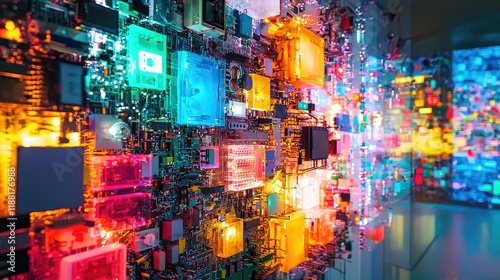 Vibrant Circuit Board Design with Colorful LED Lights and Technology