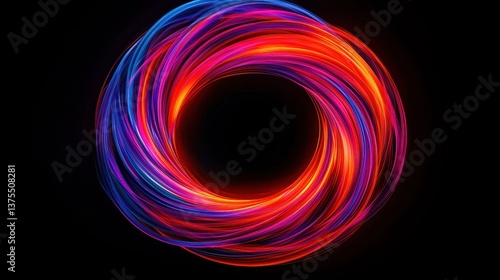 Vibrant Circular Abstract Light Trails with Colorful Swirls on Black Background for Creative Designs