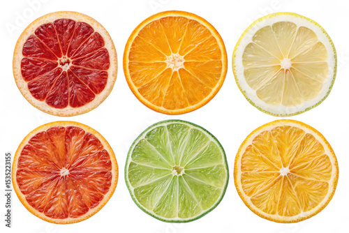 Vibrant Citrus Fruit Slices PNG Set of Fresh and Dried Lemon, Lime, Orange, Grapefruit