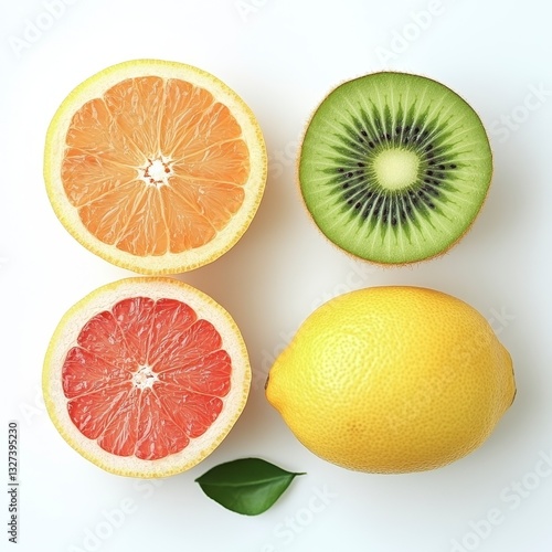 Vibrant Citrus Fruits and Kiwi Flat Lay Photography