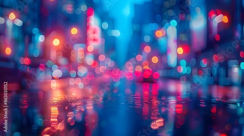 Vibrant City Lights Reflected on Wet Streets at Night