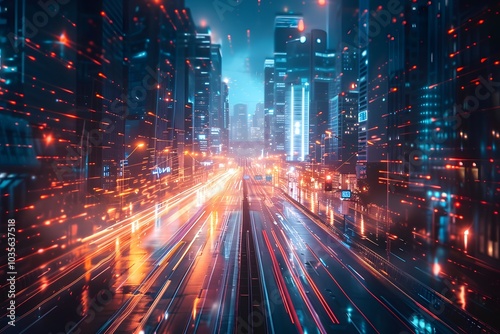 Vibrant Cityscape at Night with Dynamic Light Trails