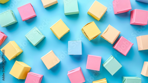 Vibrant Cleaning Sponges in a Rainbow of Colors, Artfully Arranged on a Blue Background, Symbolizing Cleanliness and Organization