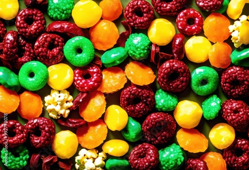 vibrant close colorful snack food collection showcasing varied rich colors tempt taste buds, shapes, textures, crunchy, sweet, savory, treats, variety