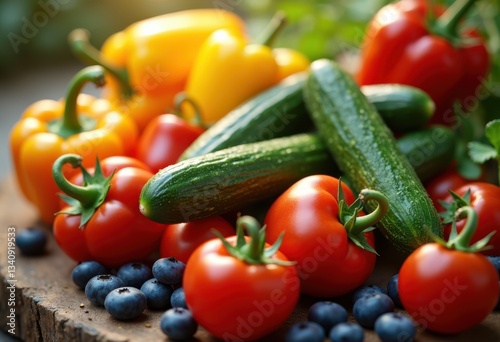 vibrant close fresh produce featuring bright colors textures highlighting nutritious vegetables fruits healthy lifestyle, apples, berries, bowl, cuisine