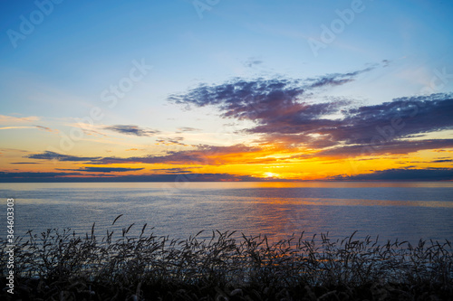 Vibrant cloudy summer ocean sunset, Sweden