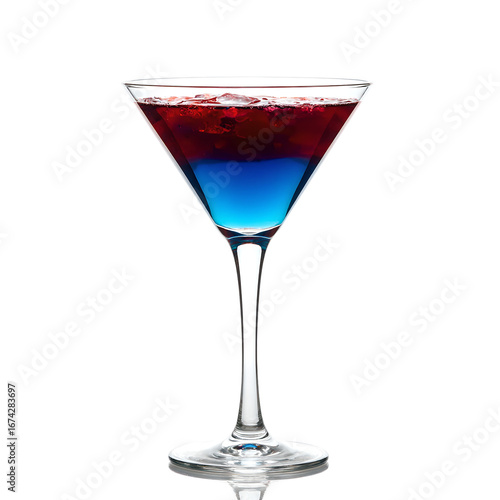 Vibrant cocktail featuring striking blue and red layers in a sleek glass perfect for food and beverage concepts, isolated