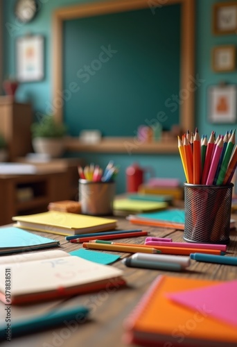 vibrant collection colorful stationery supplies classroom desk tools notebooks pens pencils art materials learning essentials, school, set, marker, crayon