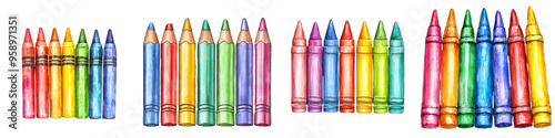 Vibrant collection of colorful crayons arranged neatly, perfect for children's art projects or educational materials.