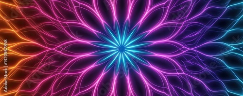 Vibrant color art abstract background concept. Vibrant abstract design featuring intricate neon patterns and colorful symmetry.