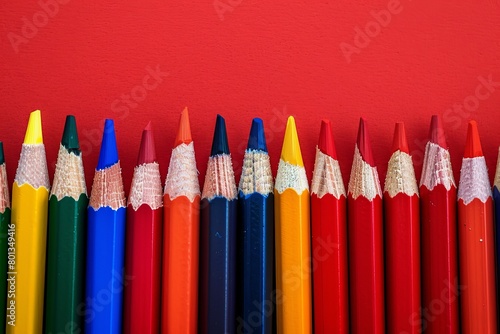 Vibrant colored pencils on bright red background for artistic projects and creative endeavors