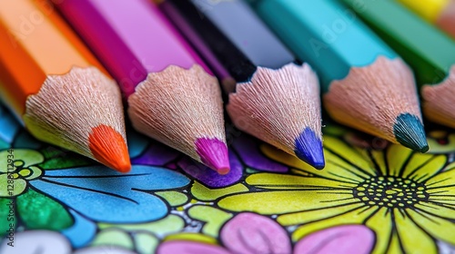 Vibrant Colored Pencils Over Flower Pattern Background Art