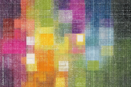 Vibrant colorful background featuring geometric squares in an engaging led screen pixels texture illustration
