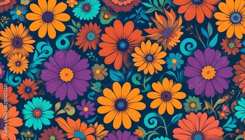 Vibrant Colorful Flowers Blooming Abundantly Together
