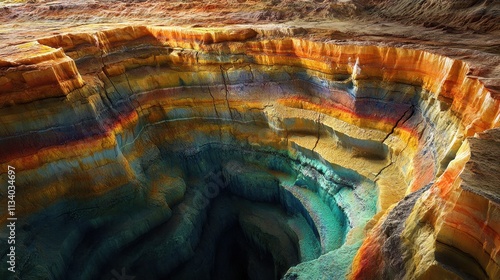 Vibrant, colorful layers of rock in a quarry. Illustrates geological formations, mining, and Earth's beauty.