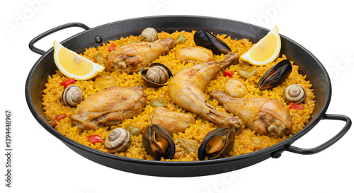 Vibrant colorful seafood paella with fresh ingredients served in a traditional pan