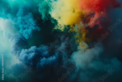 Vibrant Colorful Smoke Explosion Abstract Background with Rainbow Hues and Bright Colors for Creative Design and Art Projects
