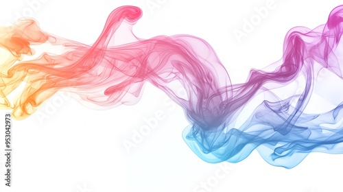 Vibrant colorful smoke waves on a white background, creating a captivating abstract art piece with fluid, flowing patterns in red, purple, and blue hues.