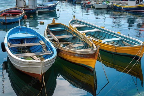 Vibrant Colorful Waterfront Boats in Tranquil Harbor