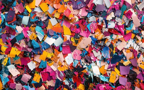 Vibrant confetti texture with randomly scattered colorful paper bits.