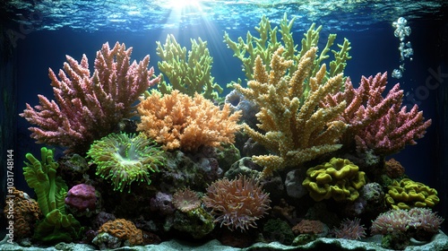 Vibrant Coral Reef Aquarium with Sunlight Underwater Scene Tropical Fish Tank Ocean Lif