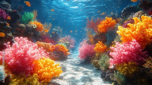 Vibrant coral reef teeming with colorful marine life.
